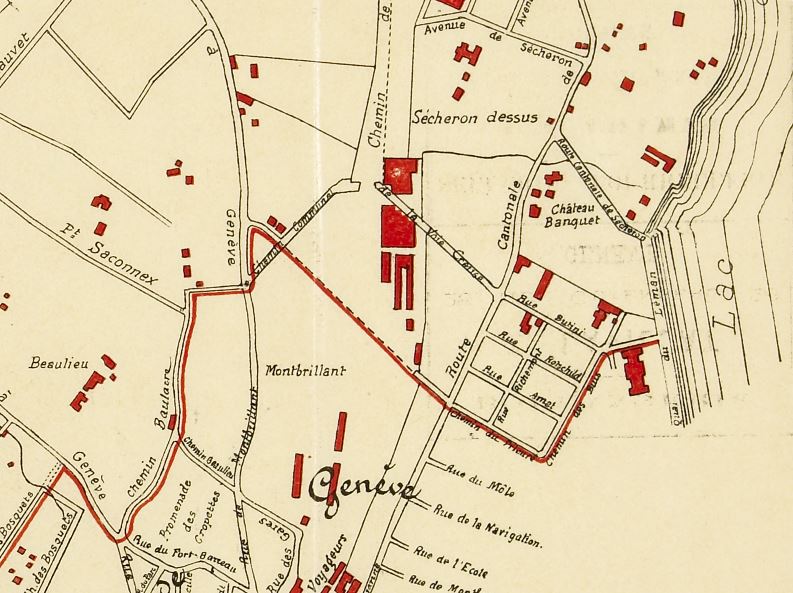 Il faut préciser que la commune du Petit-Saconnex, en 1922, allait du pont Butin jusqu’au bord du lac, à l’emplacement actuel du jardin botanique. Elle entourait complètement la commune de Genève sur la rive droite, du Rhône au lac.
